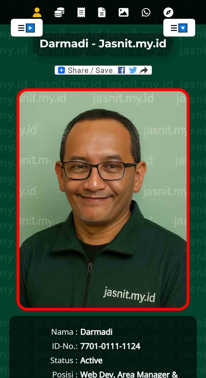 Halaman awal yang menampilkan foto dan data adalah merupakan personal yang terdaftar di Jasnit.my.id dan terdaftar dengan